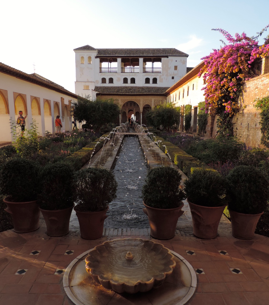 As you exit the Alhambra and make your way to Generalife, there are several gardens with beautiful fountains and water courses