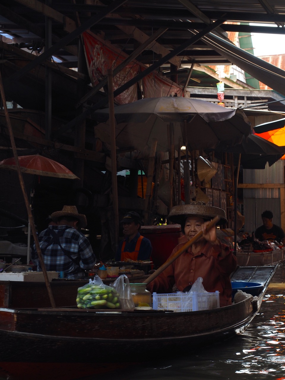 passing by several boats filled with fresh fruit