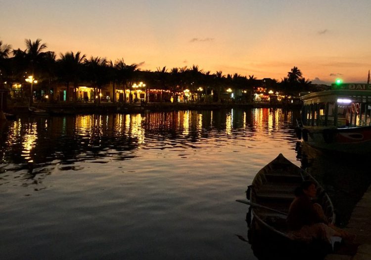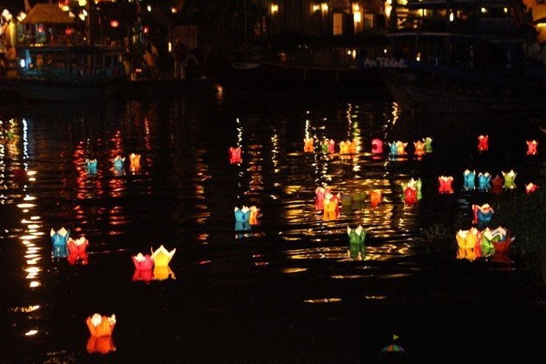 step by the river to admire the stunning view, with the floating candles in colorful cardboard boxes…a tradition of Hoi An.
